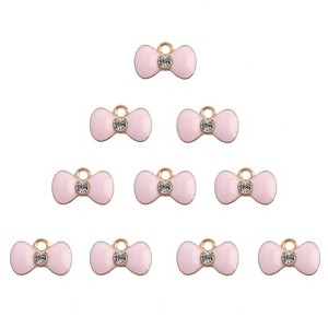 John Bead 10 Pieces 15x8mm Pink Bow Sweet & Petite Mini Cute Charms for Jewelry Making DIY Crafts