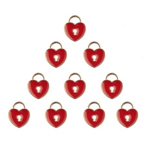 John Bead 10 Pieces 11x13mm Red Heart Locket Sweet & Petite Mini Cute Charms for Jewelry Making DIY Crafts