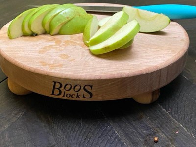 I bought this board and another Boos Block and both of them arrived damaged and wobbly. This one has deep dents on the underneath side. And it wobbles on a flat surface. Both blocks wobble! And the other one is gritty on the surface. They were on sale for a reason and are not up to Boos Blocks quality! I tossed my other boards when these were out for delivery. I've kept them but will have to try to fix the wobble - because they move while chopping - and the grittiness of the other board will need sanding. Beware of a Boos Block on Target online with a big sale price or deep discount. It's that way for a reason!