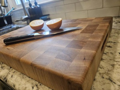 - Crafted from hand-selected American hard maple wood with end grain design, this cutting board showcases quality in its construction