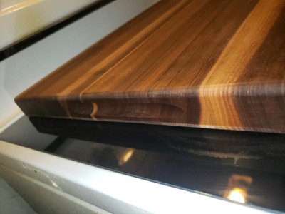 [This review was collected as part of a promotion.] I don't have a ton of counter space in my house, and that tends to hinder the big holiday cooking or even just a fun meal. Everything I do in my kitchen, I have to keep that space issue in my mind. When I saw this, the only thing I could think of is "Where in the world could I even put this?" Then, it dawned on me! I could easily store this on my stove. That way it would get maximum use... cutting and/or serving board when in use, and extra counter space/stove protector when not in use! So, I took the leap of faith and got it. To say I am blown away is an understatement. This things is BEAUTIFUL and it is HEAVY! I am confident that it is 100% black walnut, and I absolutely love that! My first use, I was terrified to use it... it's just so pretty and so nicely made. First use, I made tacos for dinner. I used the board to cut onion, tomato, and lettuce. The board survived well and looked amazing while doing it! I served all of the toppings on the board and spent entirely too long staring at how pretty it was haha! When finished I wiped it down and left it on my stove. It looks great and keeps my burners protected. It's easy to move around, thanks to the recessed handles that ensure a good and comfortable grip. Ladies with longer fingernails, you're good! I have medium length nails and had no issues moving this around. Since taco night, I have used it a good 10-15 more times, and I can't find a single thing about this board to complain about.