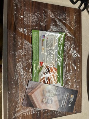 [This review was collected as part of a promotion.] I received this complimentary cutting board in exchange for an honest review. This cutting board is beautiful! It looks beautiful, the color is rich, it's smooth to the touch, and is of excellent quality! The indents on both sides are nice for handling and moving. The size is perfect, not only for using as a cutting board but also as a charcuterie board. Maintenance of the board is easy and it comes with instructions on how to care for your board.