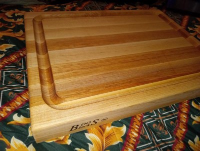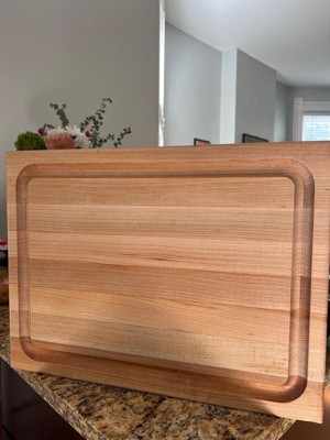 - The maple wood design of this cutting board will complement any kitchen style and is perfect for chopping meats, fruits, veggies, and more