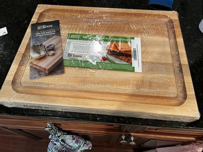 WARNING:Get to chopping meats, fruits, veggies, and more with the John Boos Maple Wood Edge Grain Cutting Board, 20 x 15 x 2.25 inches.