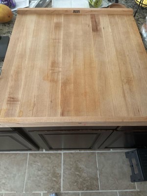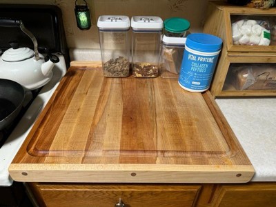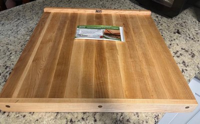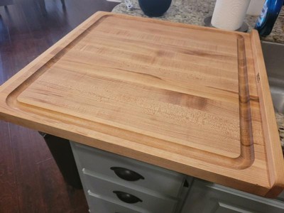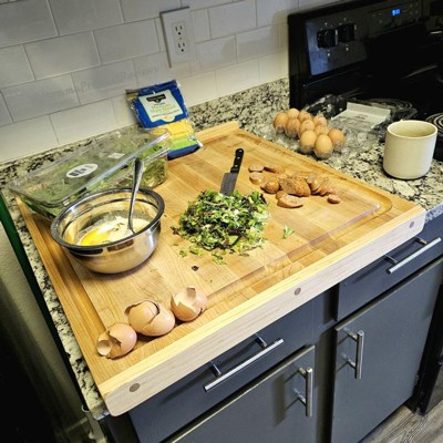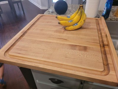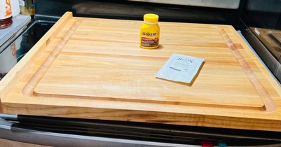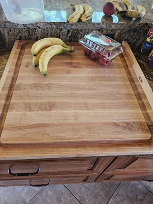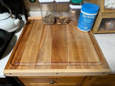 [This review was collected as part of a promotion.] I love the size of this one- it fits over a counter top perfectly and I finally have a cutting board big enough for my cooking time. It's a SOLID wooden cutting board that I expect to last longer than me. With regular maintenance (oil it at least once a month), this is a piece you only need to buy once.