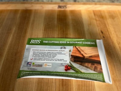 [This review was collected as part of a promotion.] This Boos Butcher block cutting board is huge, heavy, and perfect for my kitchen. I use it as a top on my counter and use it daily. It is already oiled and seasoned well. Just clean and use as recommended. Can be used on stovetop or sink as needed and removed. Both sides are used, one side has drainage for ease and other is plain. Highly recommended. I love this so much and it completes my cooking organizing.