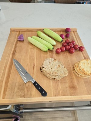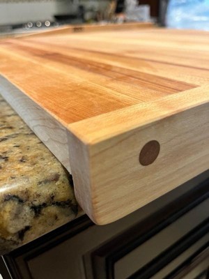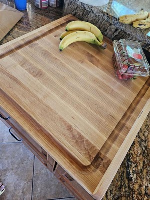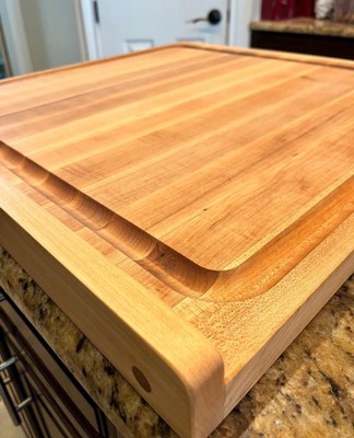 [This review was collected as part of a promotion.] This maple wood is so nice to cut on . It is made extremely durable. This cutting board will last a lifetime. The size of this board is massive. It has a juice catcher around the edges. It’s also reversible. Perfect for cutting up everything from fruits and vegetables to large meats . I never have to worry about making a mess on my counter tops again due to lack of space on my cutting board .
