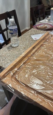 [This review was collected as part of a promotion.] This cutting board is amazing. It is huge, with two sides. One side is all smooth, the other side has the cut around the edge to catch crumbs. Very durable, and you can easily clean it.