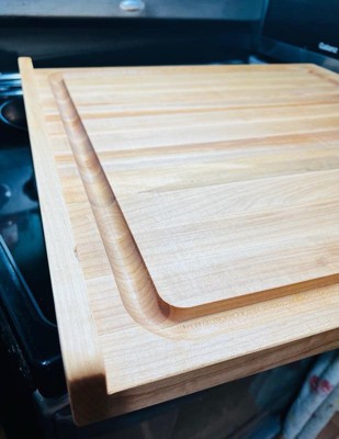 [This review was collected as part of a promotion.] This cutting board is amazing! I love how big it is, but I can still wash it in the sink. It's perfect for cutting multiple items, so you don't have to dirty more than one cutting board. I love that it has a lip on each side to keep the cutting board from moving on the counter. One side is flat, and the other side has a juice groove to collect juices. You do need to oil it with food grade mineral oil and Boos wax, but I think over time I won't have to do it as often. The end grain maple on this cutting board is much nicer than one I bought at Crate and Barrel.