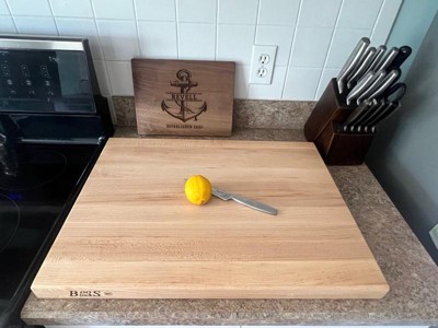 [This review was collected as part of a promotion.] Wow, this cutting board just screams "quality." The wood grain is absolutely beautiful and the size ensures you have more than enough space to cut. This thing is HEAVY! I am a smaller woman and have to put in significant effort to lift it. The size is the only con, but only because I live in an apartment with little counter space and a tiny sink that will make this difficult to wash. If you have the space for it then it is a great option. I am used to using cheap, small cutting boards so this one is a cooking luxury. I am able to store multiple cut items at once on it, making meal prep a breeze. John Boos brand has impressed me and I will look into more of their products to add to my kitchen.