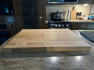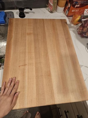 [This review was collected as part of a promotion.] I recently got the John Boos maple wood reversible edge grain kitchen cutting board, and it has exceeded my expectations. The board is thick and sits beautifully on my counter, adding a touch of elegance to my kitchen. The quality of the maple wood is evident, making it a sturdy and reliable surface for all my chopping needs. The reversible design is a practical feature, offering versatility and extending the board's lifespan. I'm delighted with this purchase and highly recommend it to anyone seeking a durable and attractive cutting board. It is low maintenance and the board I got is 24x18x1.75.