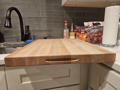 [This review was collected as part of a promotion.] I did not do a great job looking at the dimensions of this board prior to receiving it. It is huge, solid, sturdy, and cleans very easily! I am highly impressed with the craftsmanship. It will remain on our counter indefinitely.