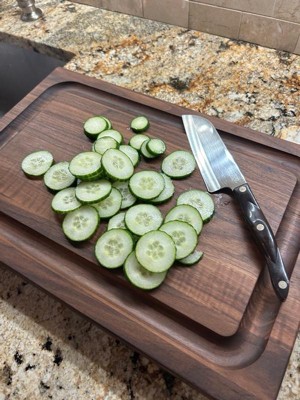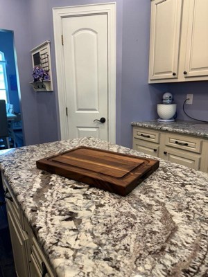 [This review was collected as part of a promotion.] Absolutely love this cutting board! It's thick and sturdy, I love that it has the dip around it to catch any juices from going all over the place. It's a durable cutting board and it's aesthetically pleasing.