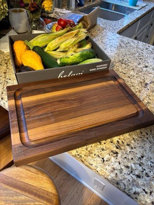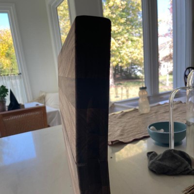 [This review was collected as part of a promotion.] This cutting board is absolutely GORGEOUS! I’ve been leaving it on my counter as a statement piece/decor and every single person that comes over talks about how beautiful it is. I’ve never seen a cutting board with this level of quality and such rich color. The handles on the sides make it so easy to move around. The only negative is the upkeep of purchasing a care kit and keeping it protected, but it’s so worth it!