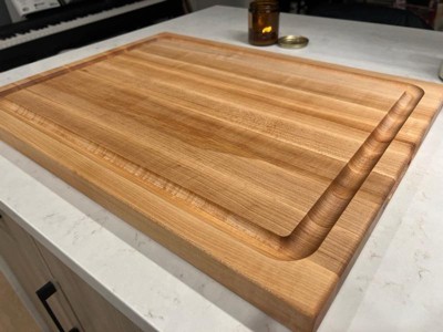 - MADE FOR LIFE: Available in 2 different sizes for your serving and charcuterie-board needs, this large wooden cutting board features a 1.5-inch thickness, an edge-grain construction, and a juice groove.
