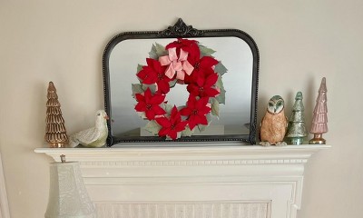 Create a warm, welcoming holiday atmosphere with this 26-Inch Poinsettia Wreath from John Derian for Target. This artificial wreath is inspired by artwork from decoupage artist John Derian and is designed in a round silhouette adorned with glitter-centered red poinsettia blossoms over a bed of light green foliage, accented with a light pink velvet flower bow at the top. Featuring a convenient hanging loop, this festive wreath is perfect for creating an elegant focal point on windows, your front door, or above the mantel.