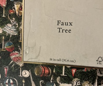 Bring warm holiday ambiance to your home with this Large Wood with Plastic Faux Christmas Tree from John Derian for Target. This large faux Christmas tree featuring artwork from decoupage artist John Derian showcases pine leaves with red berry accents supported on a wooden stand. Suitable for indoor use only, you can place it on any flat surface to instantly elevate your Christmas setup.