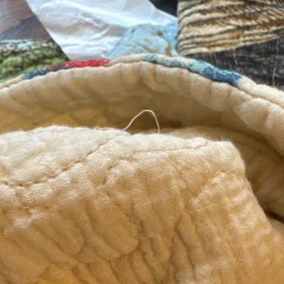 There's nothing wrong with the quality of this quilt, it's the way it was so carelessly thrown into the box for shipping. The ribbon and tag weren't even on the quilt to decoratively keep it secure. They were just thrown on top.