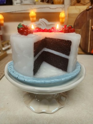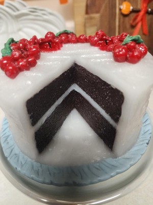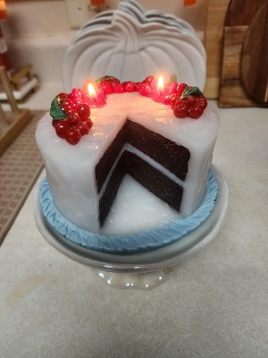 This is a cute piece of holiday decor that I plan decorating in my kitchen area. The looks of this candle is real like. There is no scent. Which is ok since I use wallflowers in my kitchen. I'm not sure if I'll continue to light the wicks on the cake. Only because I don't like the red color melting. All & all it's good for what it's worth.