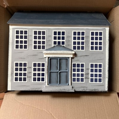 This was sent loose in a box with no wrapping or protection. It was also missing the door wreath. Overall, very cute, but disappointed in how it was shipped and that it was missing a part.