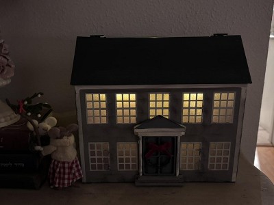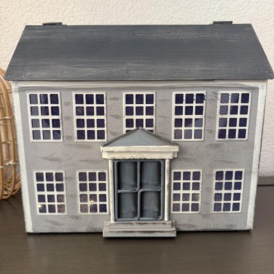 Love the flip top metal house. The details are adorable. I cannot believe I paid this price! This might be my favorite Target Derian piece. I use 2 rechargeable candles inside and mistletoe mouse critters from Terrian outside of the house. Love!