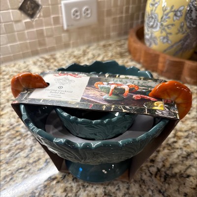 Revamp your serveware for casual entertaining with this Stoneware Shrimp Cocktail Bowl from John Derian for Target. Made of stoneware, this shrimp cocktail bowl set features artwork from decoupage artist John Derian. The set includes a large green bowl for the shrimp with embossed leaves and shrimp handles plus a smaller bowl for the cocktail sauce, both of which are microwave safe.