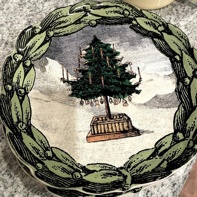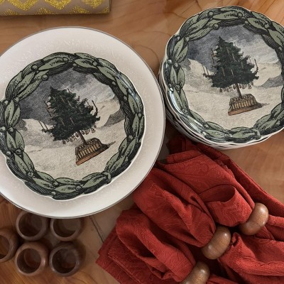 Set your table for festive dining with these 4-Pack Stoneware Appetizer Plates from John Derian for Target. Made of stoneware, these appetizer plates features artwork from decoupage artist John Derian that showcases a candlelit Christmas tree print in the center along with a leaf pattern along the edges. Made of stoneware, these round plates are also microwave and dishwasher safe for easy reheating and cleaning.