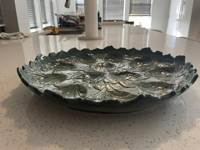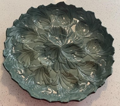 Upgrade your serveware with this Serve Platter from John Derian from Target. Made of stoneware, this round plate features artwork from decoupage artist John Derian showcasing an embossed leaf design for a nature-inspired look. Plus, this platter is both microwave and dishwasher safe for easy reheating and cleaning.