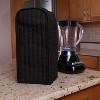 Keep your favorite kitchen gadget looking in tip-top shape with this RITZ Blender Cover crafted to keep your appliance clean and damage-free. This handsome quilted cover measures 7 in. by 15.5 in. by 5.75 in. (17 cm by 39 cm by 14 cm) and is designed to accommodate most standard blenders slipping on and off with ease. Fashioned from a polyester/cotton blend this durable cover will keep your appliance free of scratches and scuff marks when stored. Check out the entire RITZ line of appliance covers to keep all of your favorite kitchen devices in pristine condition. Machine washable.