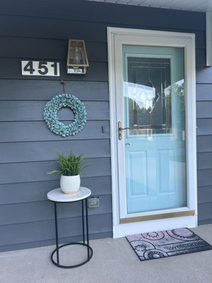 This fixture looks beautiful against my dark grey house! My front door has gold in it and this light tied in beautifully! I was a little concerned about the quality, but it is sturdy and well made. All for a great price! I love it!