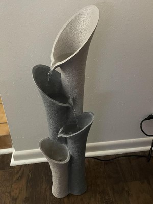 I bought this fountain for my sister. It reminds me of calla lilies. It offers a soft soothing water sound.