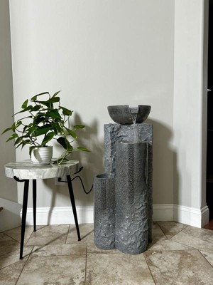 Bowl and Pillar 34 1/2" High Large Modern Zen Outdoor Decor Faux Stone Floor Fountain with Light LED Waterfall Outside Garden Patio