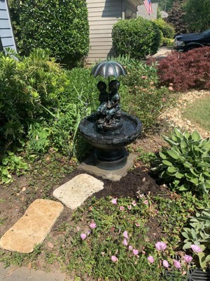 Boy and Girl Under Umbrella 40" High Large Rustic Indoor Outdoor Decor Bronze Floor Fountain Waterfall Outside Garden Patio Yard