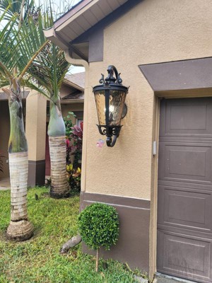 We purchased three of these beautiful outdoor wall lamps to replace our old lamps. What a difference they have made! These lamps are some of the most beautiful we have ever seen. We could not be more pleased with our purchase. They make our house look even better!