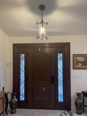 This outdoor light set with hanging pendant and wall light is beautiful!! I changed an old recessed can light into this beautiful hanging pendant light. Look at the difference!!