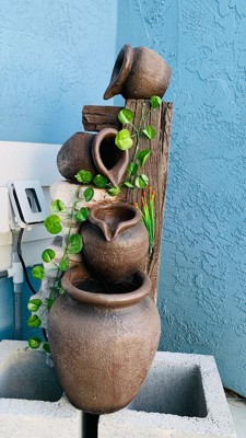 Cascading 33 inch High Three Jugs Rustic Fountain
