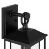 With a look that inspires traditional charm, the Califa outdoor wall light from John Timberland® makes for a beautiful addition to your home's exterior spaces. The black finish double box frame adds visual interest, coupled with an elegant canopy and metal ring similar to a classic carriage light. The single, bright bulb on this piece is housed within clear rain drop glass panels to unfiltered illumination. Wet location rated, the Califa outdoor wall light is perfectly suited for any of your outdoor spaces.