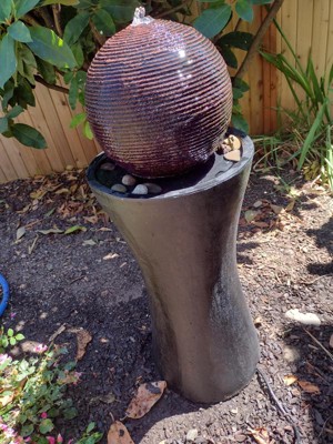 Very under impressed...Water is held in a small basin and not the entire size of the base. Can barely, barely hear a fountain sound no matter what I try. The ball on top sits on brackets and mine are not level. No control for LED lights "on all the time".... Should have sent it back but threw away the box....