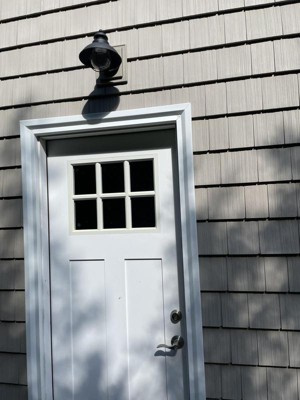 Very pleased with this outdoor light. Looks nice installed on the side of my gray shingled dock shed