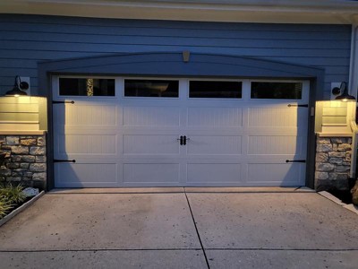 Lights really complemented the farmhouse style of our house. They are large, so be sure your outlets are high above the height of the garage door)s). Love the look.