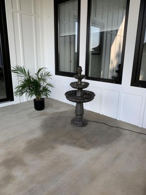 Rendaux 43" High Large Italian Outdoor Decor Gray Faux Stone Floor Fountain with Light LED 3-Tier Outside Garden Patio Yard Backyard