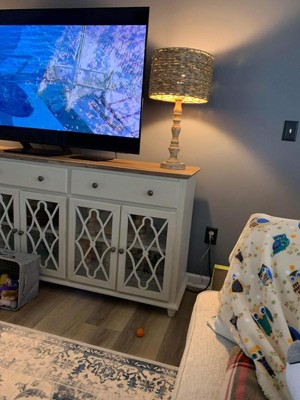 When I saw this online I really liked it but after purchasing it and getting it I like it even more it will go perfect in my new sunroom but we have not moved in yet love the color of the shade and the distressed look it's perfect