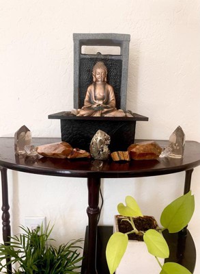 Meditating Buddha 11" High Small Indoor Decor Faux Stone Tabletop Fountain Waterfall Desk Relaxation Bedroom Living Room