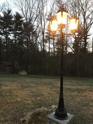 This is a beautiful lamp. It lights up the section of driveway very nicely. I was very disappointed when the base of the lamp post developed a deep crack. I was worried it would fall and thought about bolstering it with some support wiring or having someone weld it back. Never got around to doing either of those because Hurricane Hellene (I prefer this spelling) toppled a huge pine tree onto it, thus solving the problem. I will likely repurchase the same item again, though, because it is so beautiful and functional.
