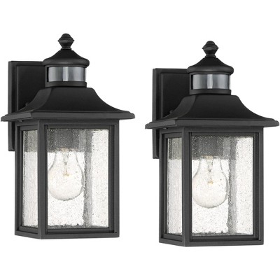 John Timberland Mission Outdoor Wall Light Fixtures Set of 2 Black Motion Sensor 16 1/2" Seeded Glass for Post Exterior Barn Deck
