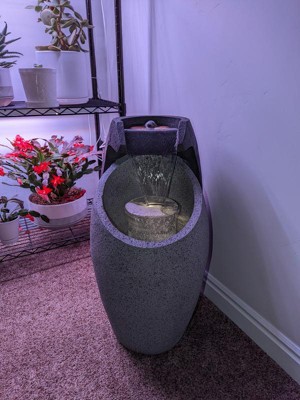 Enhances a room with beautiful flickering light as the water cascades into the lower basin, and a nice gurgling sound of flowing water gives an ambiance of outdoors, inside. Very easy to setup, and I plug mine into an Alexa enabled outlet so that I can easily, by voice command "Alexa, fountain off", turn it off when the sound interferes with TV or when I leave the house.The reason I recommend that is because the fountain does not have a switch, the only way to turn it off is to unplug it or to have it plugged into a switched outlet. Getting the WiFi enabled outlet to plug it in is worth it, and I love this fountain and think you will too!