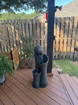 We love our fountain! It looks beautiful on our back patio with a wonderful little waterfall sound! It was easy to put together too!