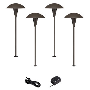- Includes four mushroom-shaped path lights, one 12V 45 watt plug-in transformer and 50-feet of cable.