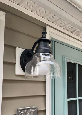 John Timberland Nobel Modern Outdoor Wall Light Fixture Black Motion Sensor Dusk to Dawn 10" Clear Seedy Glass for Post Exterior Barn Deck House Porch
