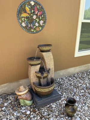 Love the sound of the water on my patio. The lights give off a nice glow at night. I’m very happy with the fountain. My dog thinks the water is running for her!,